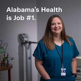 Alabama’s health is job #1. Learn how our employees are working hard, together with you, to safeguard the health of all Alabamians. From prenatal care to taking care of seniors, we’ll never stop putting people first. Thanks for doing your part.