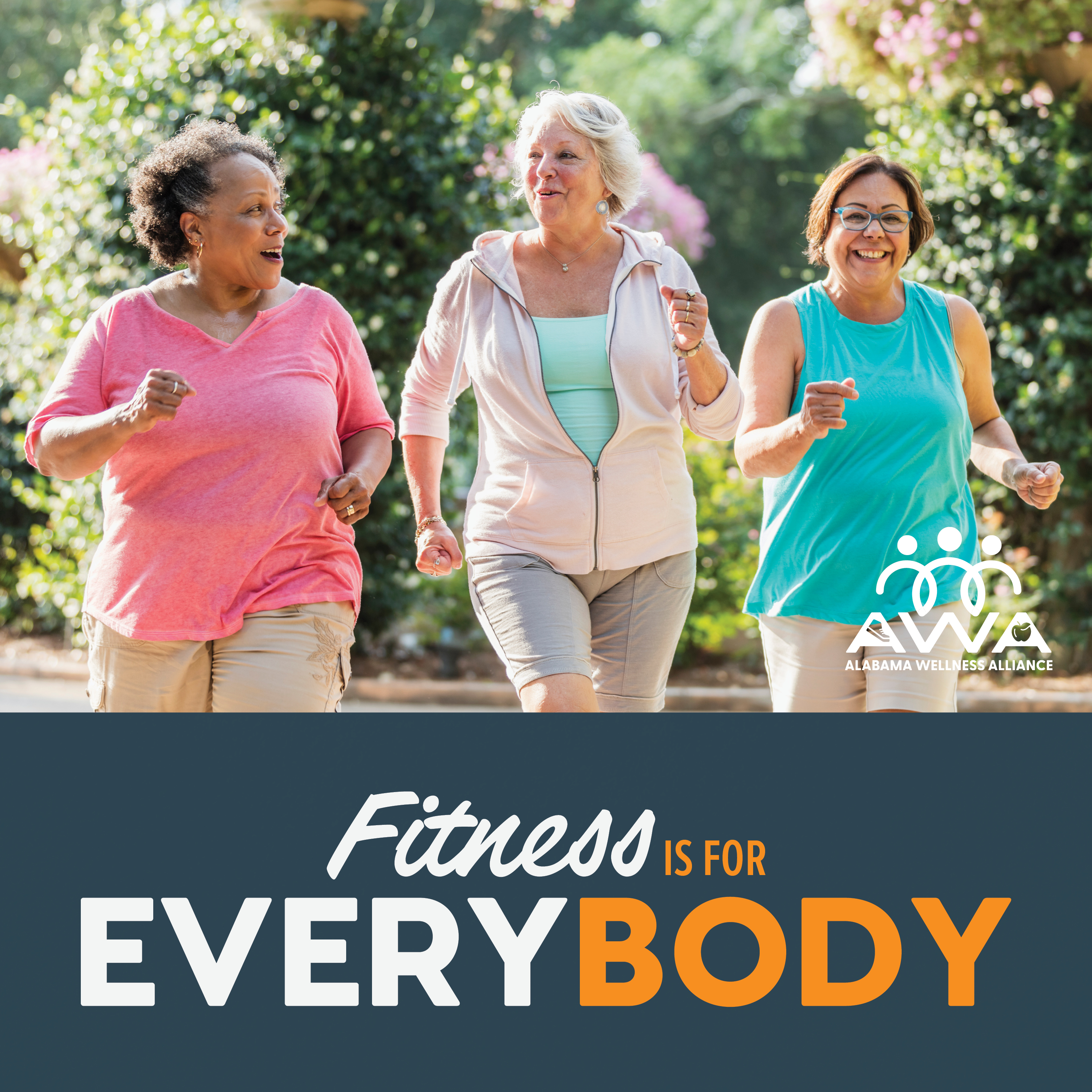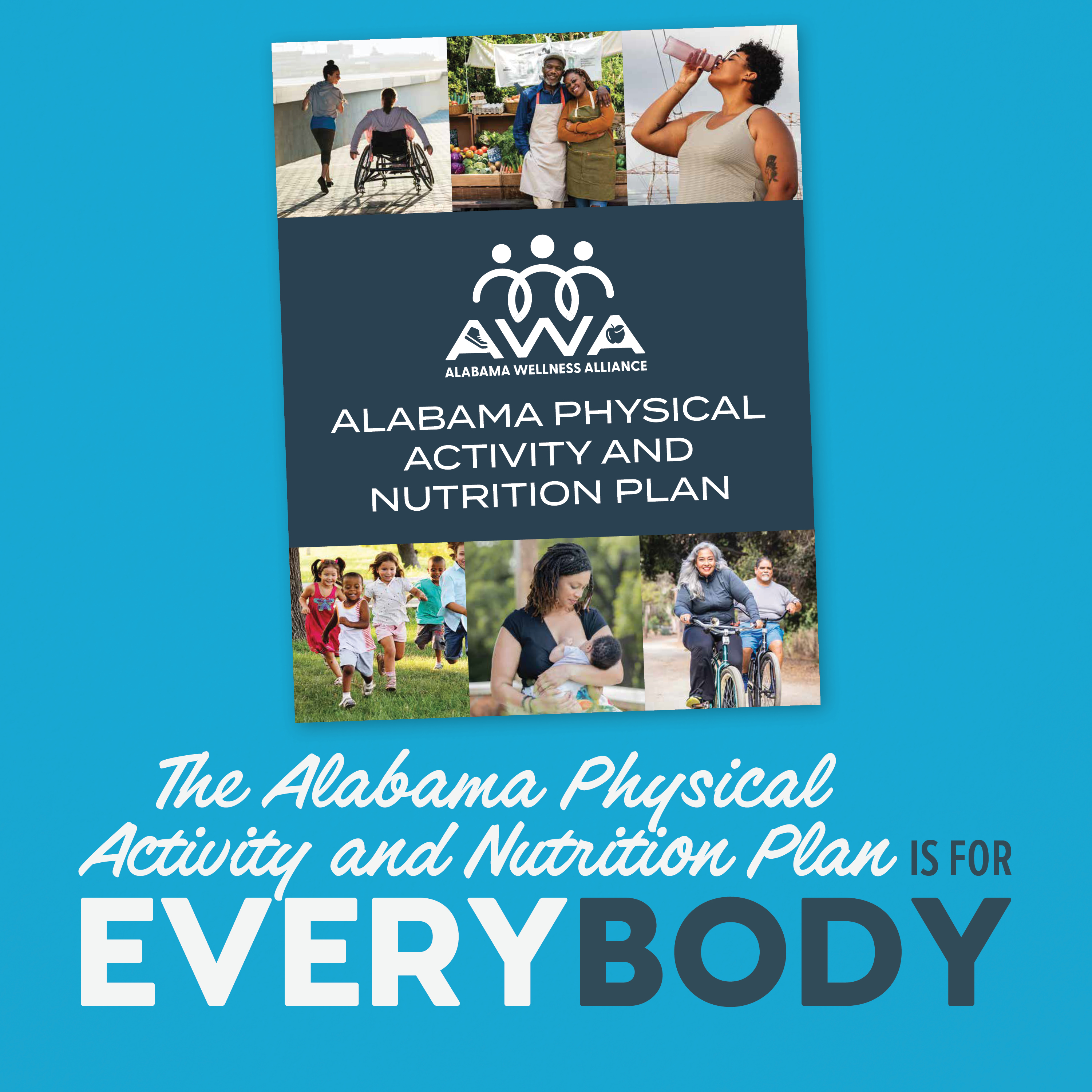The "For Every Body" campaign is designed to support the Alabama Physical Activity and Nutrition Plan (ALPAN) 2023 – 2033 by encouraging healthy lifestyle behaviors and access to resources for all Alabamians, regardless of age, race, size, ability level, etc. These social media graphics and messages can be utilized to increase awareness of the ALPAN, promote state and local events, promote healthy behaviors, encourage use of community resources, and so much more.