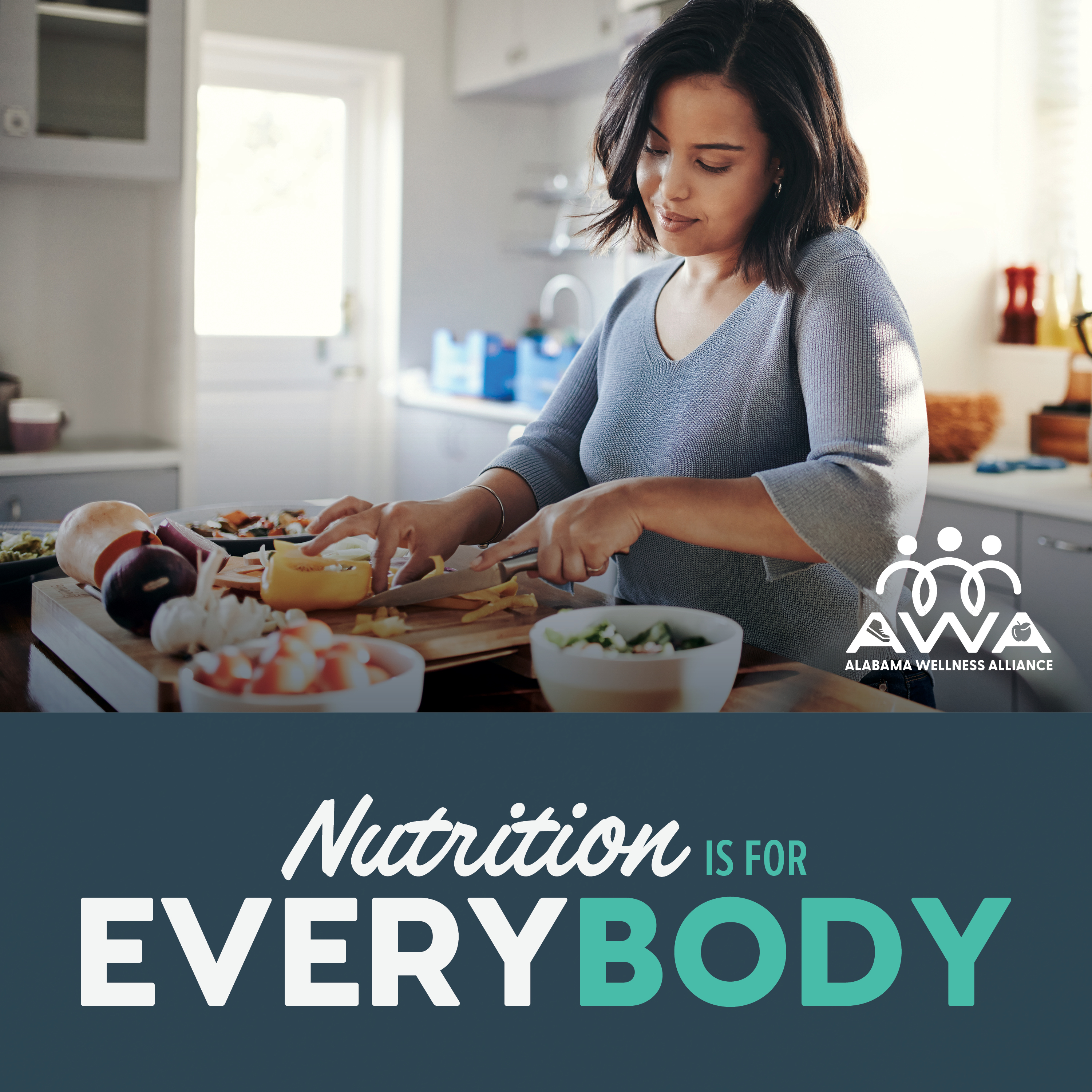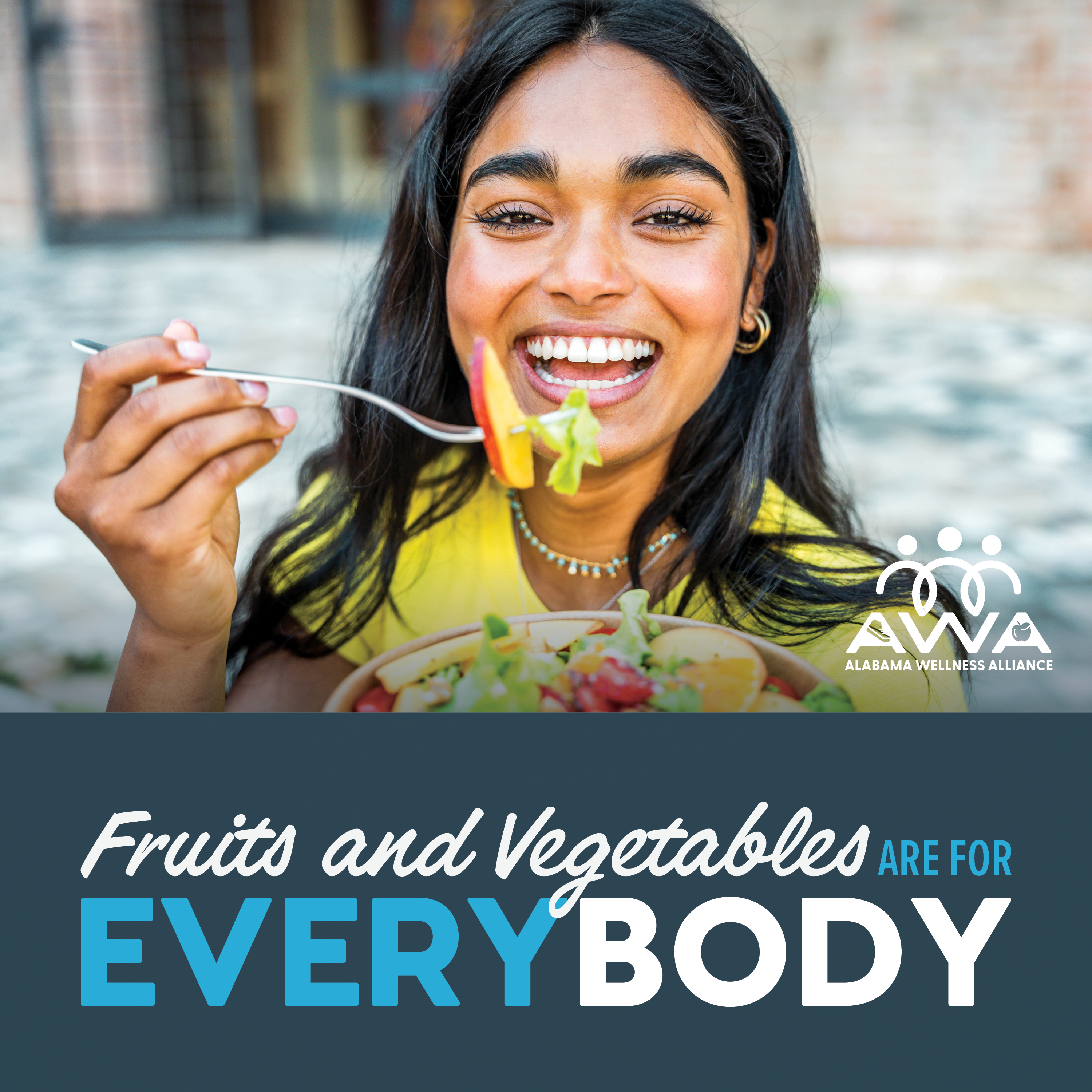 Use the "For Every Body" social media campaign materials and hashtag #ForEveryBodyAL to support national, state, or local level promotions and observances.