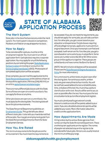 Once complete, you can mail the application to the State Personnel Department at the address shown at the top of the application, FAX it to (334) 242-1110, or email it to [email protected].