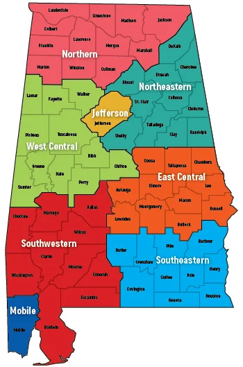 Counties include Bibb, Chilton, Fayette, Greene, Hale, Lamar, Perry, Pickens, Sumter, Tuscaloosa, Walker