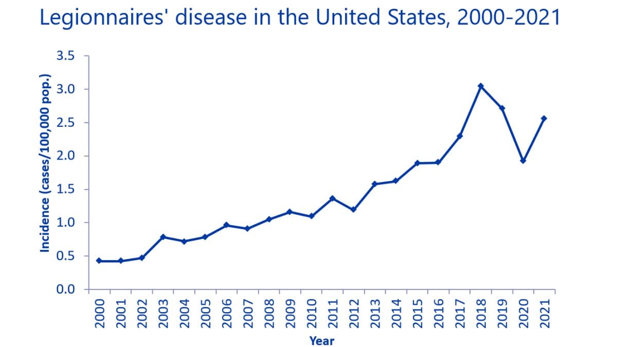 Legionnaires' disease incidence has been increasing since 2000. Click the image to enlarge.