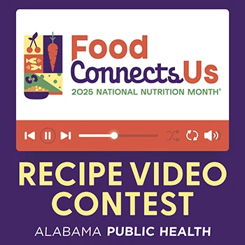 Want to share your cooking and social media skills? Participate in the Alabama Department of Public Health's National Nutrition Month® recipe video contest! This year’s theme is “Food Connects Us.” Food is a beautiful way to connect with one another through culture and community. We encourage you this month to explore the areas in your life where food has brought connection.