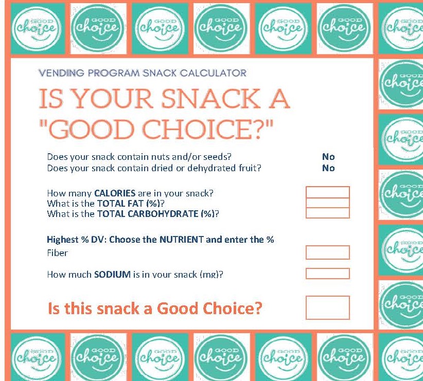 Is your snack a "Good Choice"? Our quick calculator will look at your snack's contents (including fat, sodium and calories) and let you know whether or not you're making a healthy choice. Grab a snack and hit the link below to give it a try!