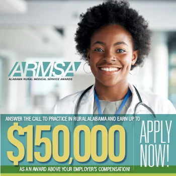 ARMSA gives service-payback loans to primary care physicians (PCPs), Obstetricians (OBs) and primary care nurse practitioners (NPs) in return for their practicing in Alabama rural communities that have a shortage of PCPs. The program is sponsored by the Alabama Department of Public Health’s (ADPH) Office of Primary Care and Rural Health. It was developed by Governor Kay Ivey’s policy office and funded by a legislative act. The award is $50,000 per year for a maximum of 3 years for PCPs and OBs and $30,000 per year for a maximum of 3 years for NPs.